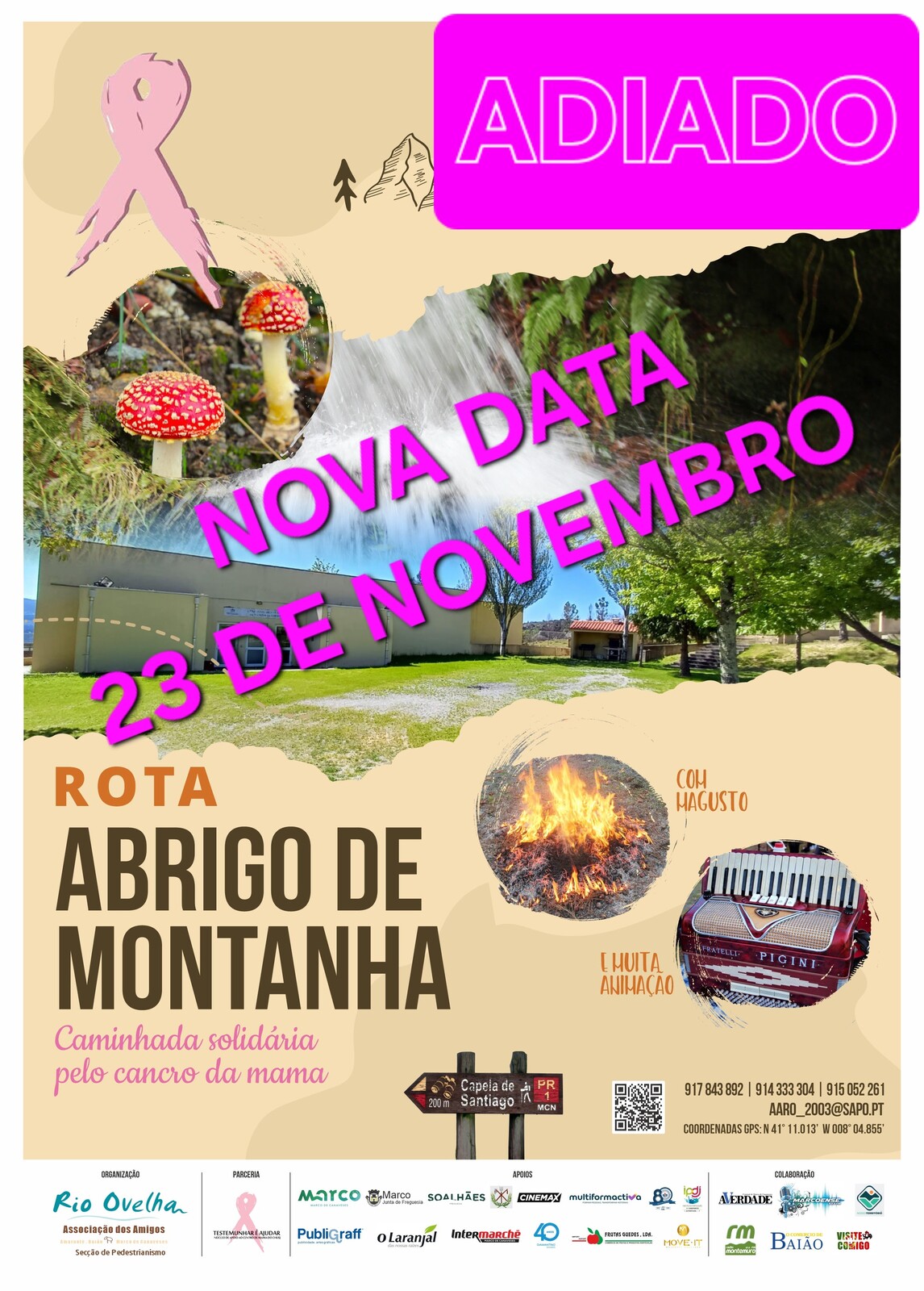 A Associação dos Amigos de Rio Ovelha (AARO), do Marco de Canaveses, adicou para o dia 23 de novembro a tradicional caminhada Rota Abrigo de Montanha da Venda da Giesta, que este ano é uma Caminhada Solidária pelo Cancro da Mama.