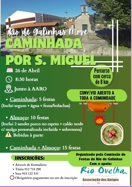 A Associação dos Amigos do Rio Ovelha é parceira da Comissão de Festas em Honra de S. Miguel de Rio de Galinhas, na Caminhada por S. Miguel, a realizar no próximo dia 26 de abril, em Rio de Galinhas.
