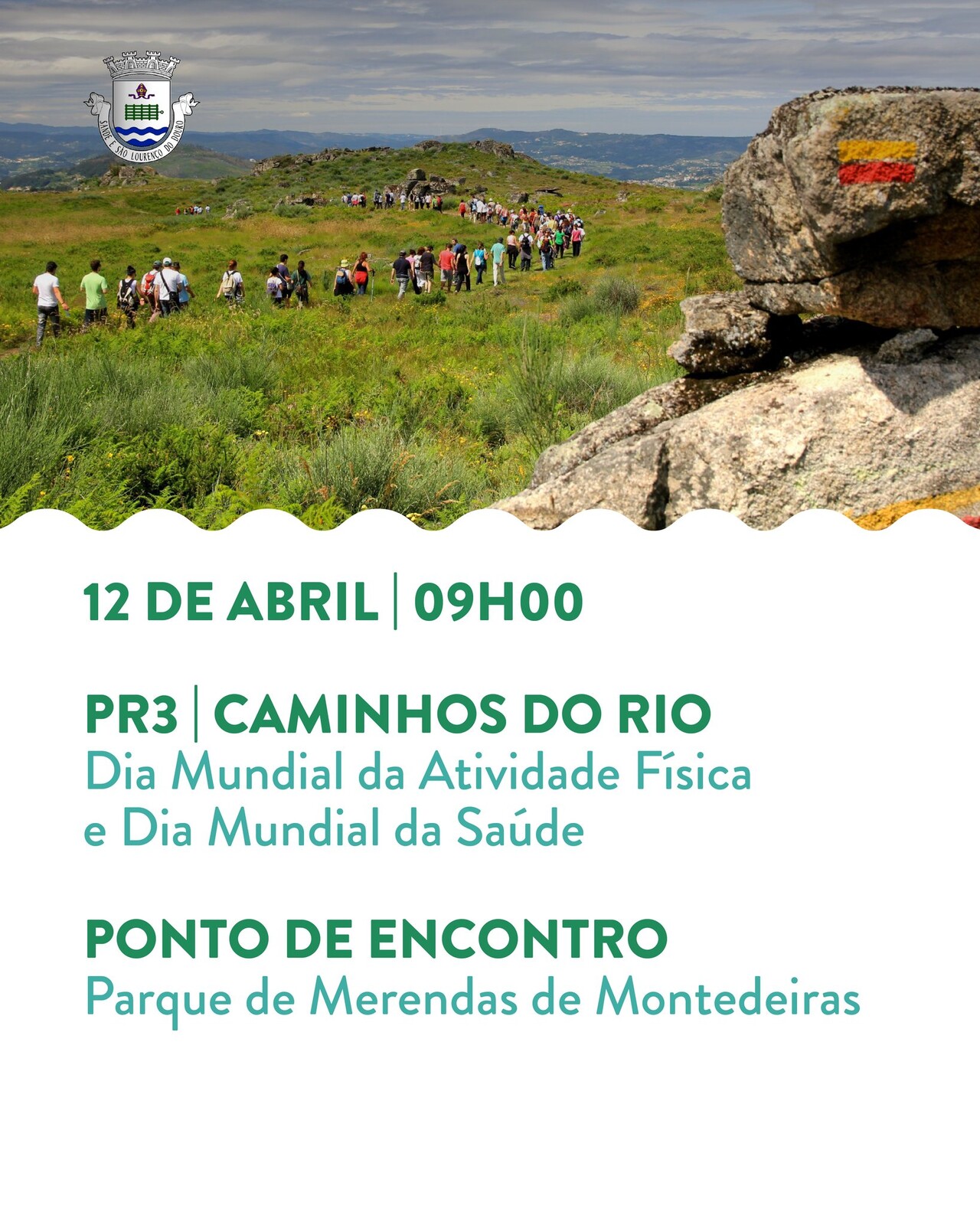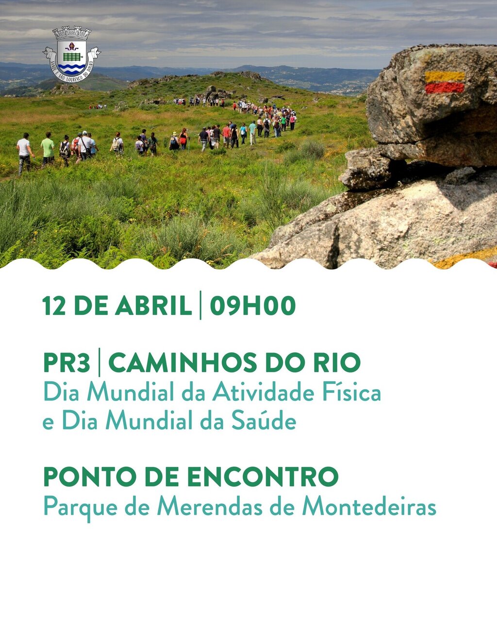A próxima caminhada realiza-se no dia 𝟏𝟐 𝐝𝐞 𝐚𝐛𝐫𝐢𝐥 (𝐝𝐨𝐦𝐢𝐧𝐠𝐨), no percurso 𝐏𝐑𝟑 𝐂𝐚𝐦𝐢𝐧𝐡𝐨𝐬 𝐝𝐨 𝐑𝐢𝐨, assinalando o 𝐃𝐢𝐚 𝐌𝐮𝐧𝐝𝐢𝐚𝐥 𝐝𝐚 𝐀𝐭𝐢𝐯𝐢𝐝𝐚𝐝𝐞 𝐅𝐢́𝐬𝐢𝐜𝐚 e o 𝐃𝐢𝐚 𝐌𝐮𝐧𝐝𝐢𝐚𝐥 𝐝𝐚 𝐒𝐚𝐮́𝐝𝐞.