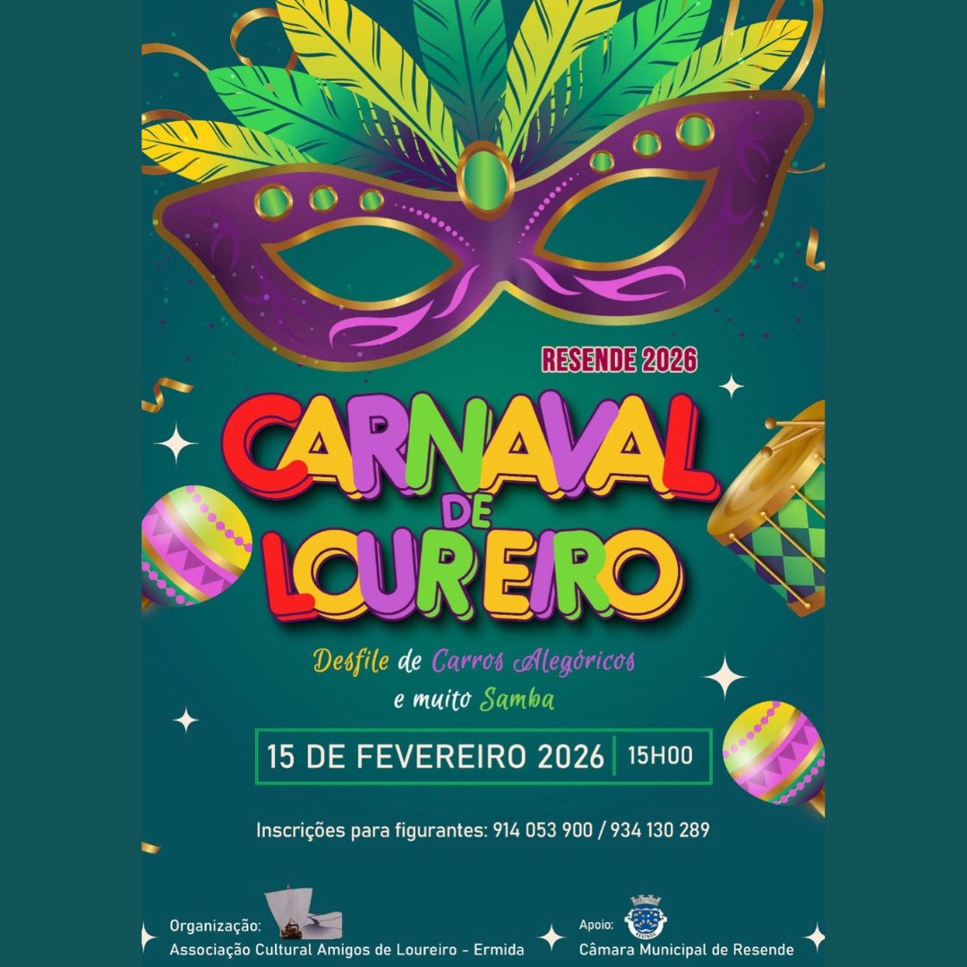 A tradição, a cor e a alegria regressam às ruas da Vila de Resende com o Carnaval de Loureiro 2026, um desfile cheio de cor, sátira e animação, com carros alegóricos e muito samba!