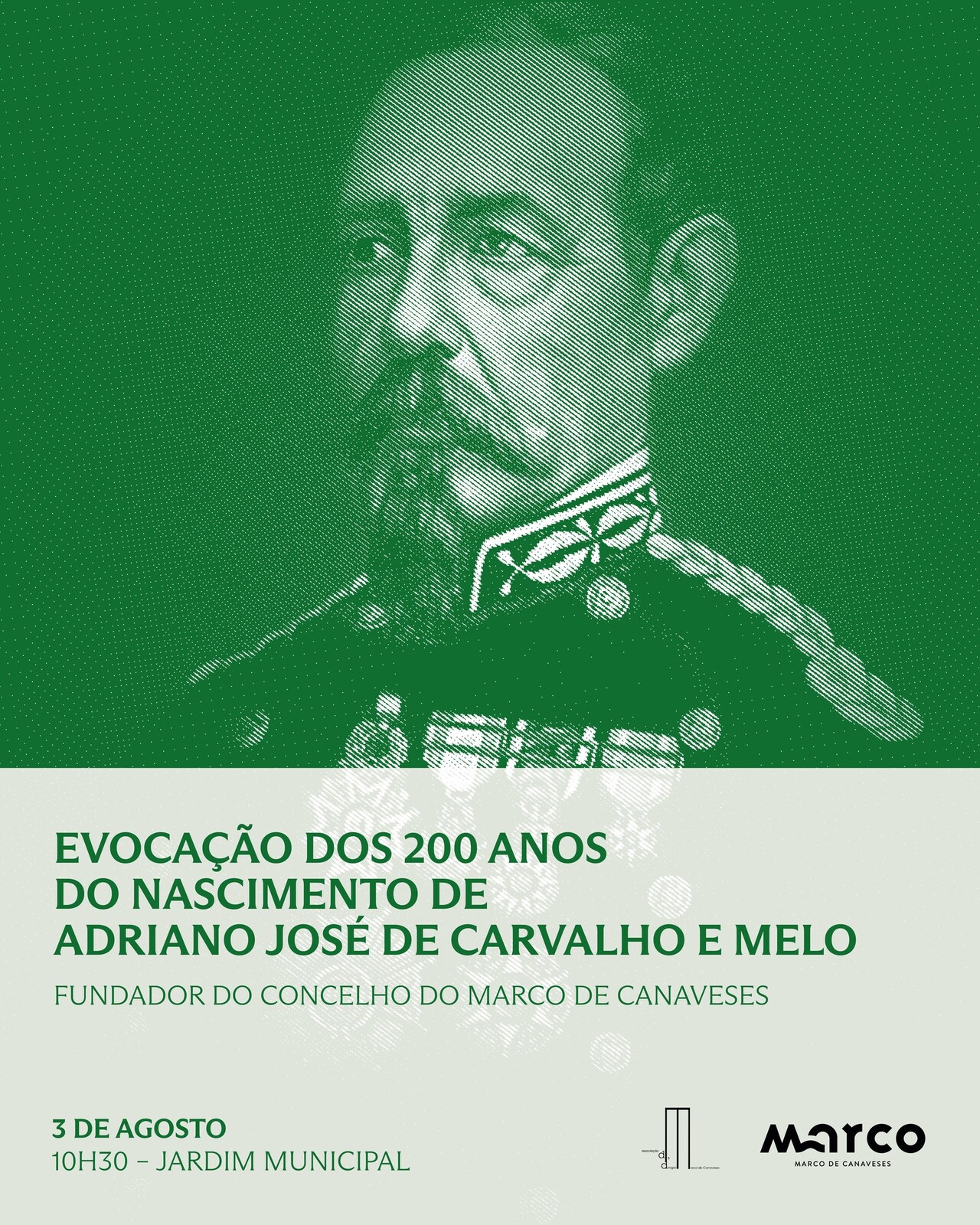 No dia 3 de agosto, o Marco de Canaveses celebra os 200 Anos do Nascimento de Adriano José de Carvalho e Melo, figura fundamental na criação do Concelho. A Câmara Municipal, em parceria com a Associação dos Amigos do concelho de Marco, vai promover um programa especial para honrar o seu legado.