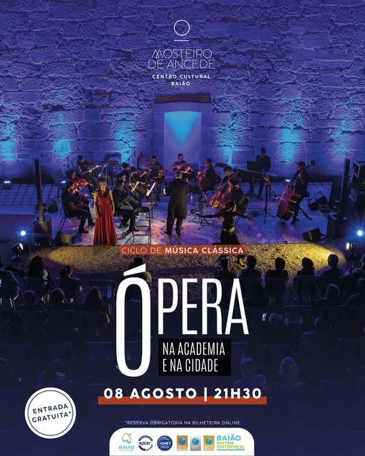 No próximo dia 8 de agosto, pelas 21h30m, o Mosteiro de Ancede - Centro Cultural (MACC-Baião) acolhe o grupo Ópera na Academia e na Cidade para um concerto inesquecível, dedicado à ópera e à música clássica.
