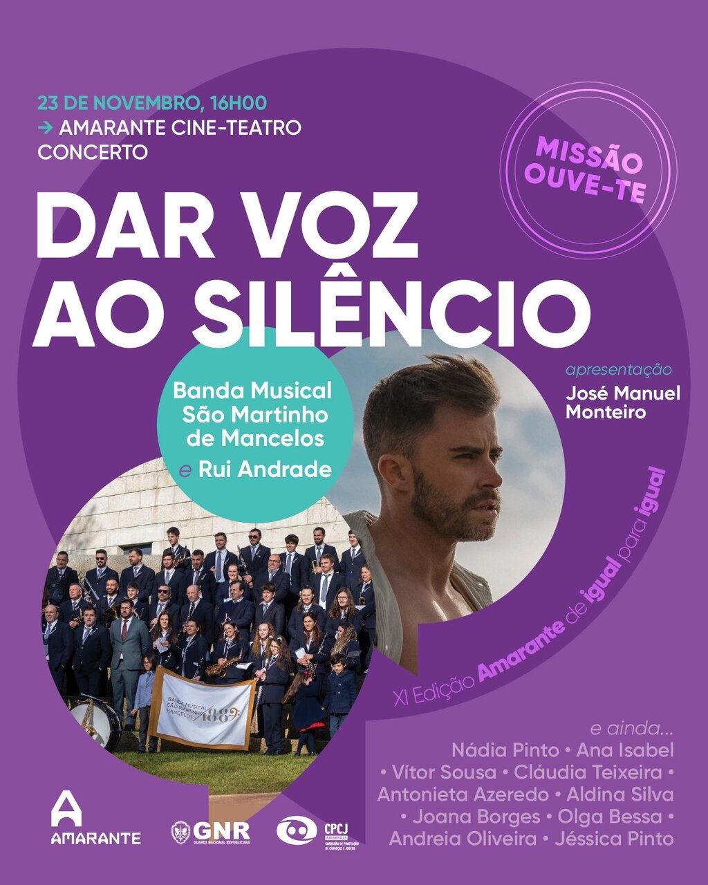 O concerto da Banda Musical de São Martinho de Mancelos com a participação especial de Rui Andrade, conta ainda com os artistas Nádia Pinto, Ana Isabel, Vítor Sousa, Cláudia Teixeira, Antonieta Azeredo, Aldina Silva, Joana Borges, Olga Bessa e Andreia Oliveira e Jéssica Pinto - que se unem para dar voz a esta causa. A apresentação ficará a cargo do apresentador José Manuel Monteiro.
