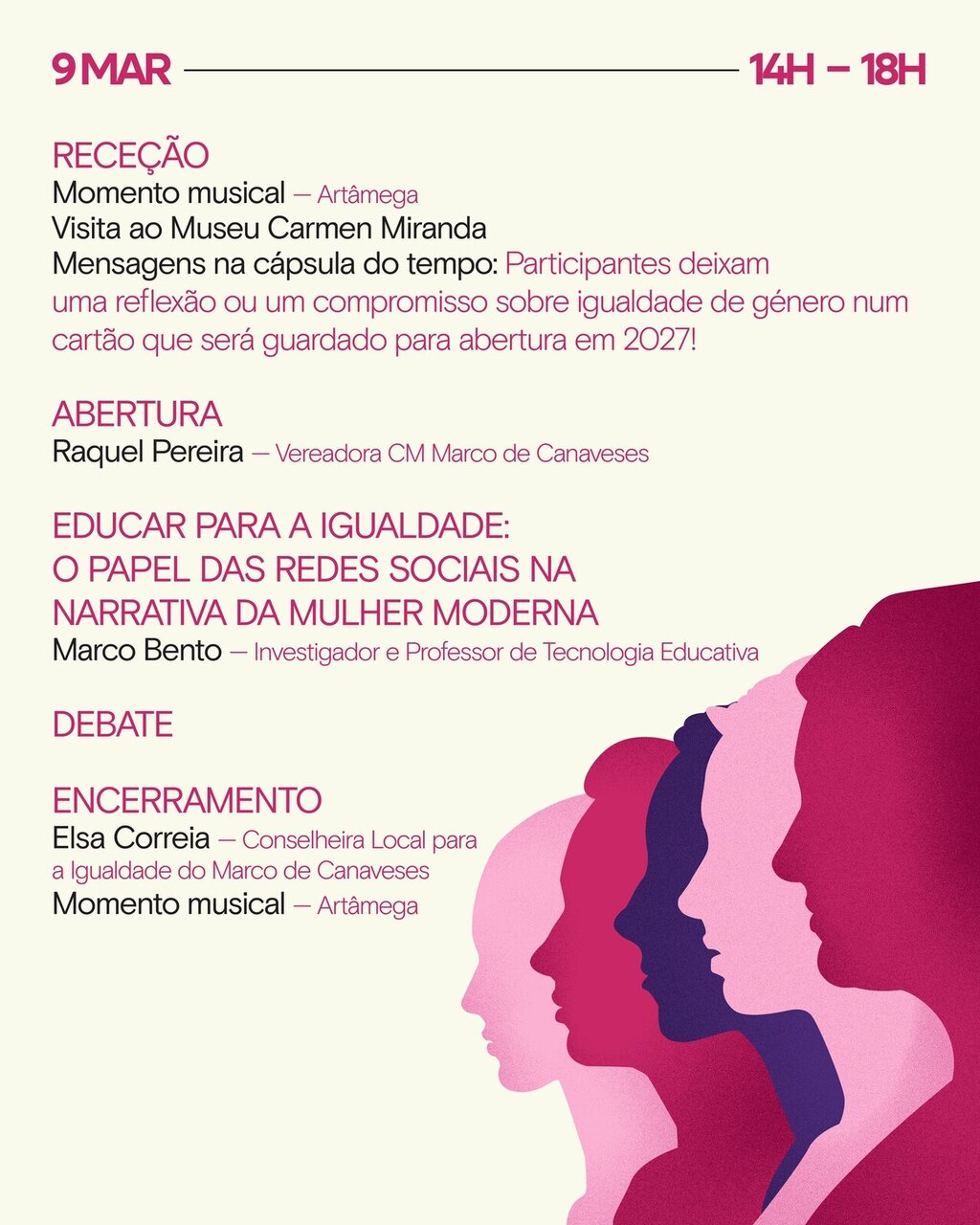 No dia 8 de março (domingo) assinala-se o Dia Internacional da Mulher. A Câmara Municipal do Marco de Canaveses irá celebrar a data no dia 9, segunda-feira, com um programa comemorativo a decorrer no Museu Carmen Miranda.