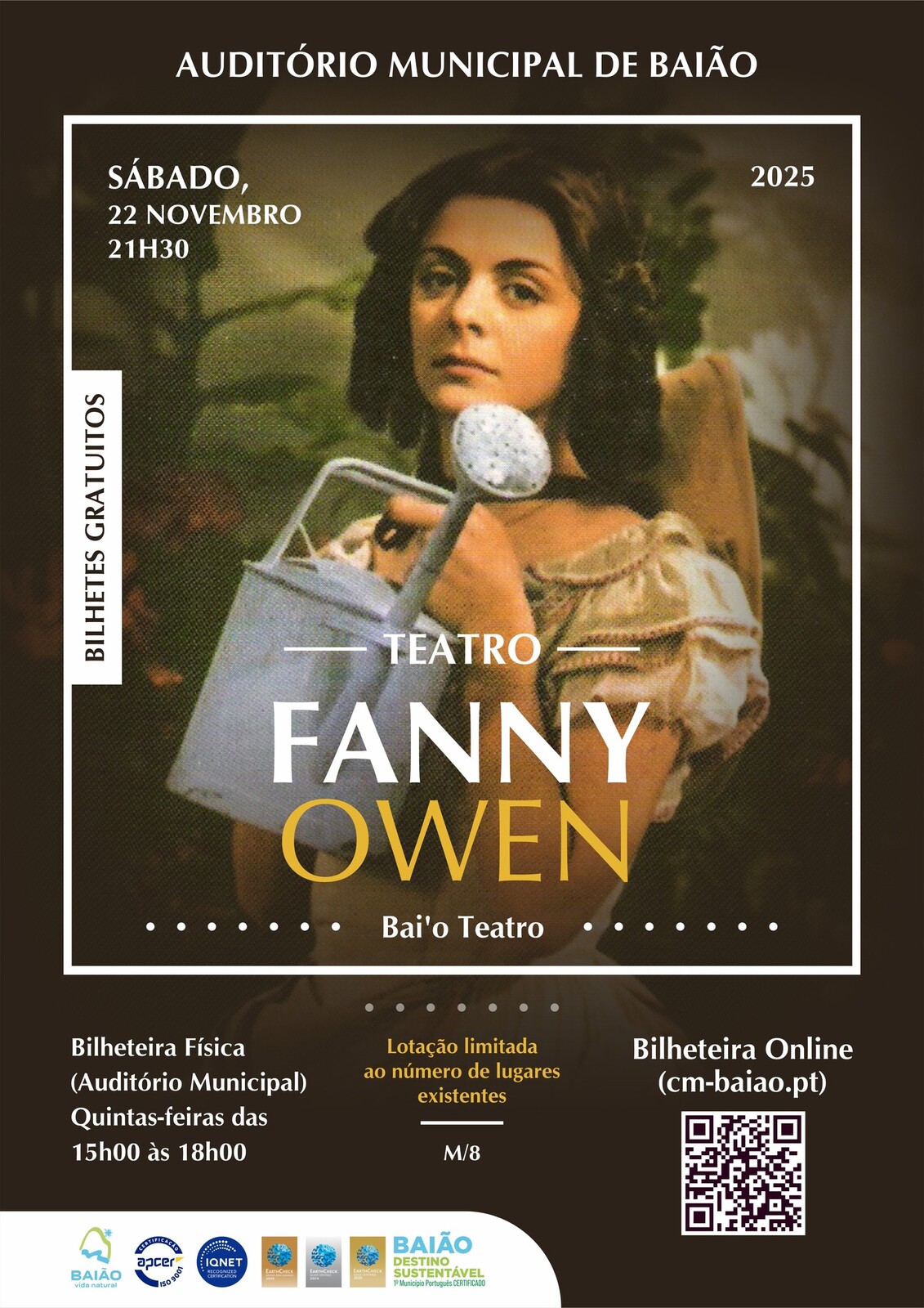 – Bilheteira física – Auditório Municipal de Baião – Quintas-Feiras das 15h00 às 18h00.