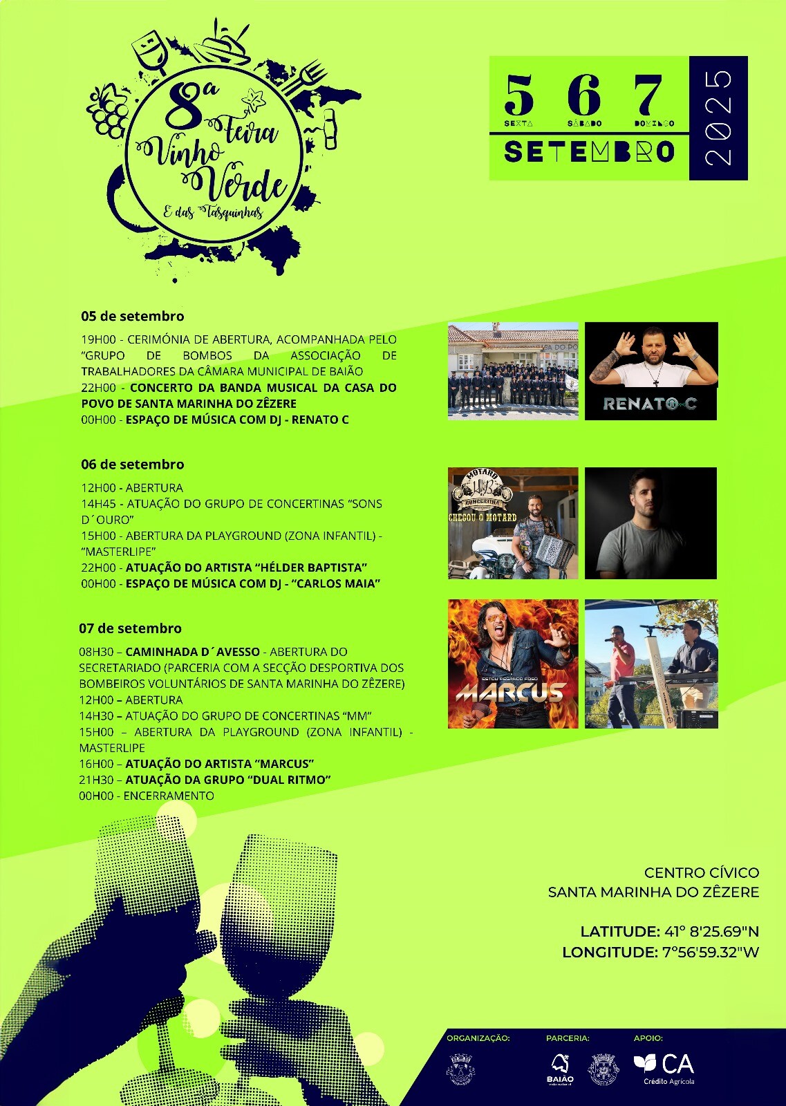 8.ª edição da Feira do Vinho Verde e das Tasquinhas de 5, 6 e 7 de setembro, no Centro Cívico de Santa Marinha do Zêzere.