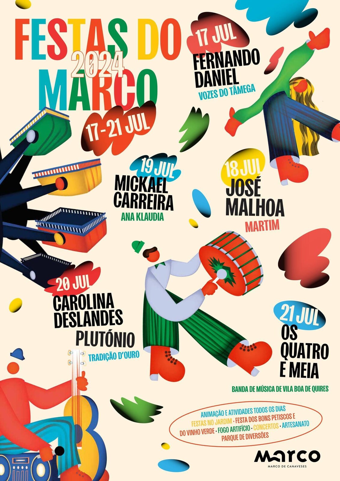 A edição de 2024 das Festas do Marco decorre entre os dias 17 e 21 de julho, com muita música, gastronomia, vinhos verdes, artesanato, animação e divertimentos para todas as idades.