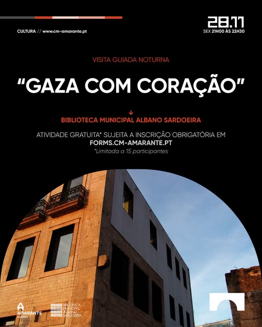 Aceite o desafio da Biblioteca Municipal Albano Sardoeira e participe na visita guiada noturna “Gaza com Coração” no próximo dia 28 de novembro, entre as 21h00 e as 22h30.