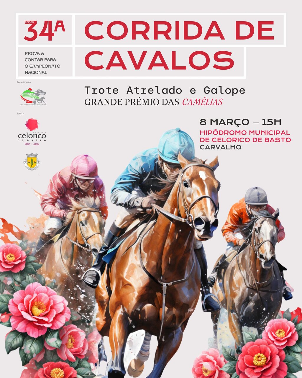 O Hipódromo Municipal em Carvalho prepara-se para acolher a 34ª Corrida de Cavalos a contar para o Campeonato Nacional – Trote atrelado e galope : o “Grande Prémio das Camélias”, no dia 8 de março.