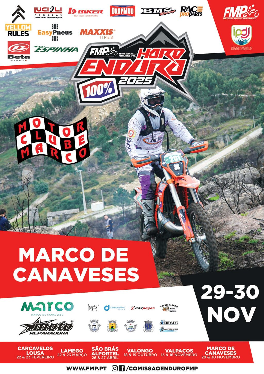 O Marco de Canaveses volta a ser palco de uma das provas mais exigentes do motociclismo nacional. Nos dias 29 e 30 de novembro de 2025, o concelho acolhe novamente a etapa do Hard Enduro 100%, integrada no Campeonato Nacional de Hard Enduro, numa organização do Motor Clube do Marco com o apoio da Federação de Motociclismo de Portugal e do Município do Marco de Canaveses.