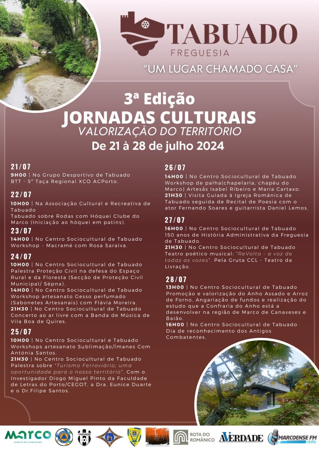 - 26 de julho, visita guiada à Igreja Românica de Tabuado, seguida do recital de Poesia com o ator Fernando Soares e o guitarrista Daniel Lemos.