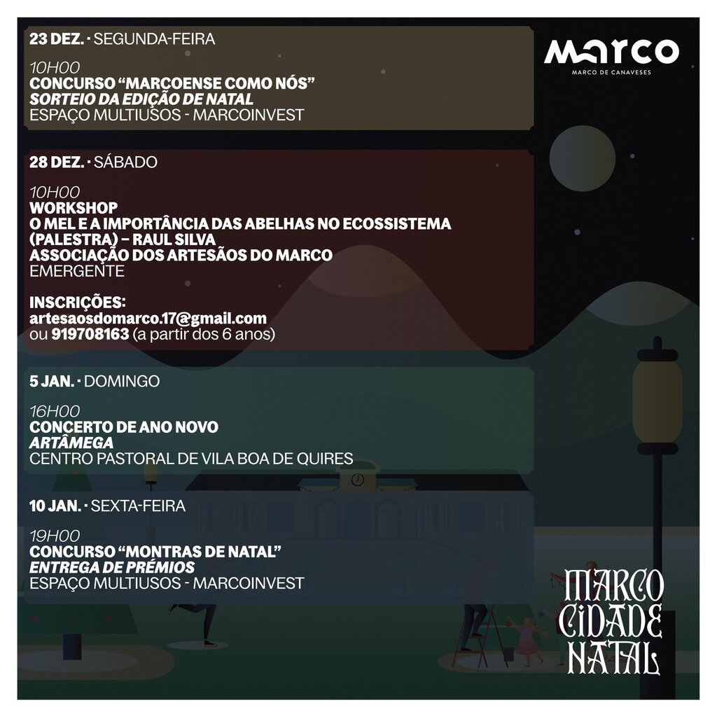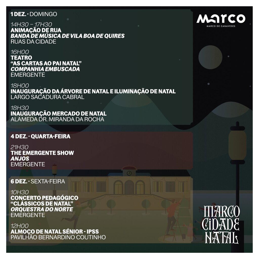 Os marcuenses poderão desfrutar de animações de rua, concertos, oficinas criativas, espetáculos temáticos e feiras tradicionais, além de uma decoração especial que iluminará os principais espaços da cidade.