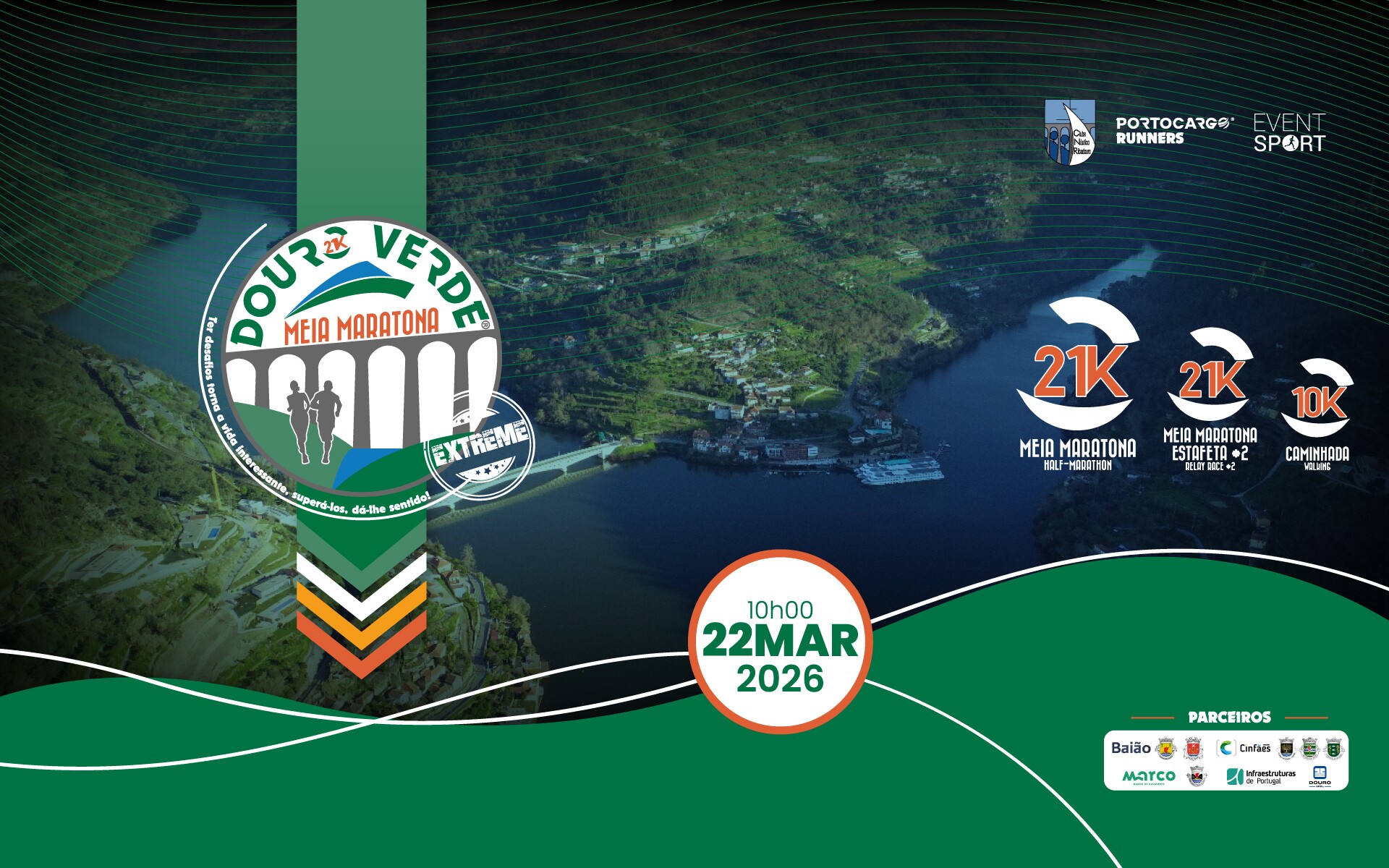 Organizada pelo Clube Náutico de Ribadouro, em parceria com a Eventsport e a Portocargo Runners, a Meia Maratona Douro Verde conta, uma vez mais, com o apoio dos municípios de Baião, Cinfães e Marco de Canaveses, evidenciando a dimensão intermunicipal do evento e o trabalho colaborativo entre entidades públicas e privadas na concretização da iniciativa.