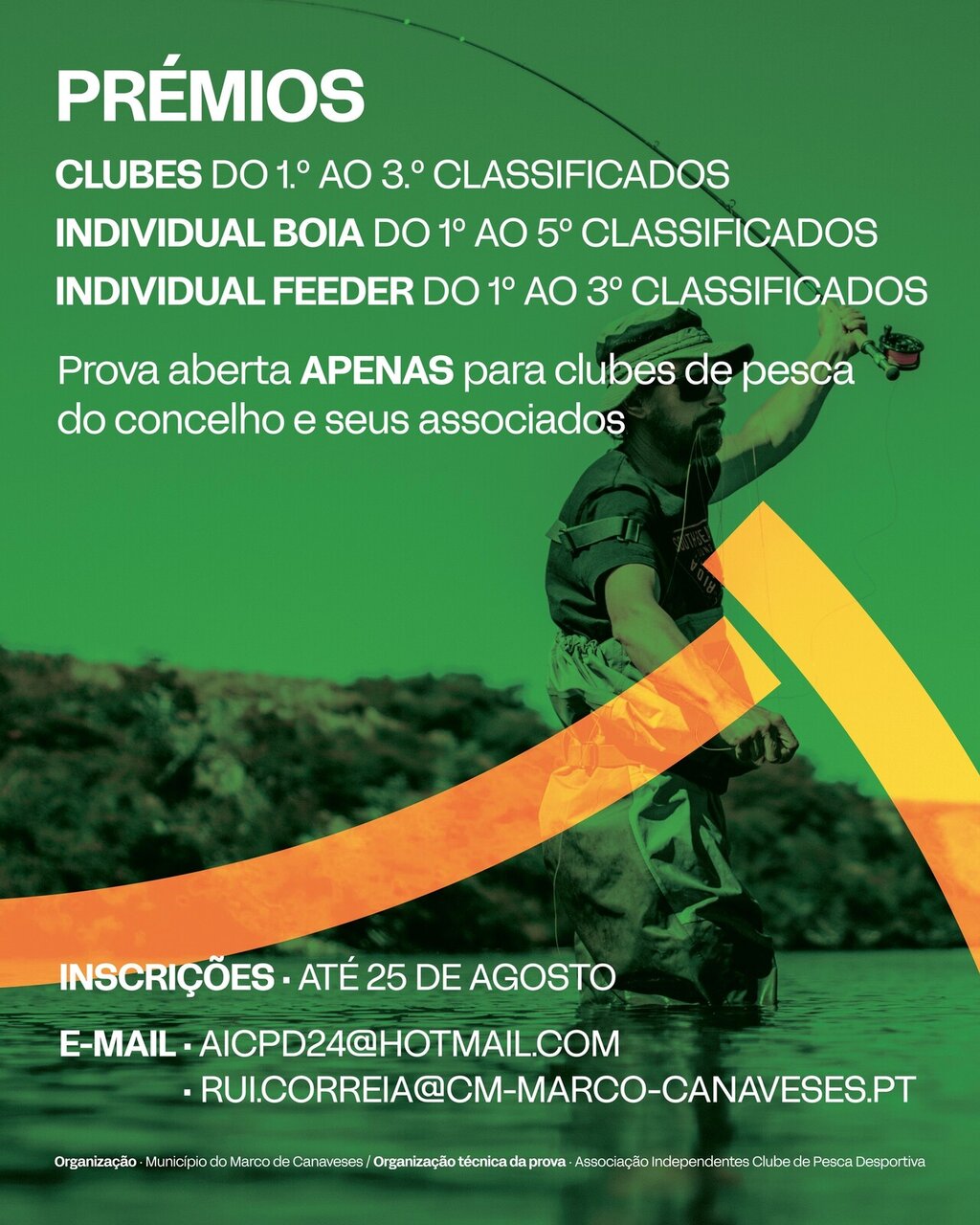 As inscrições na Taça do Município de Pesca Desportiva podem ser feitas até ao dia 25 de agosto através dos e-mails aicpd2@hotmail.com ou rui.correia@cm-marco-canaveses.pt.