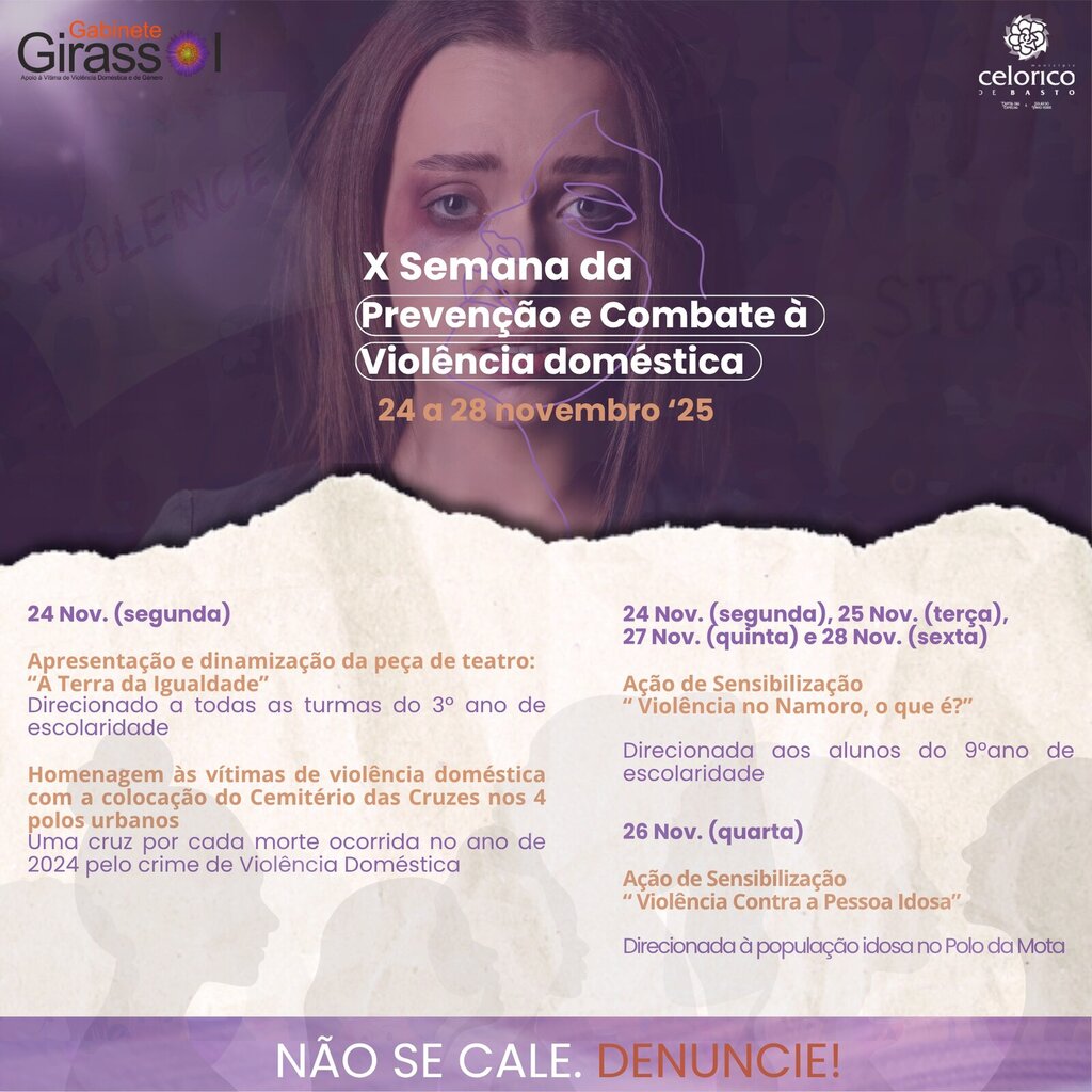 O Município de Celorico de Basto promove, de 24 a 28 de novemvro, a X Semana da Prevenção e Combate à Violência Doméstica.