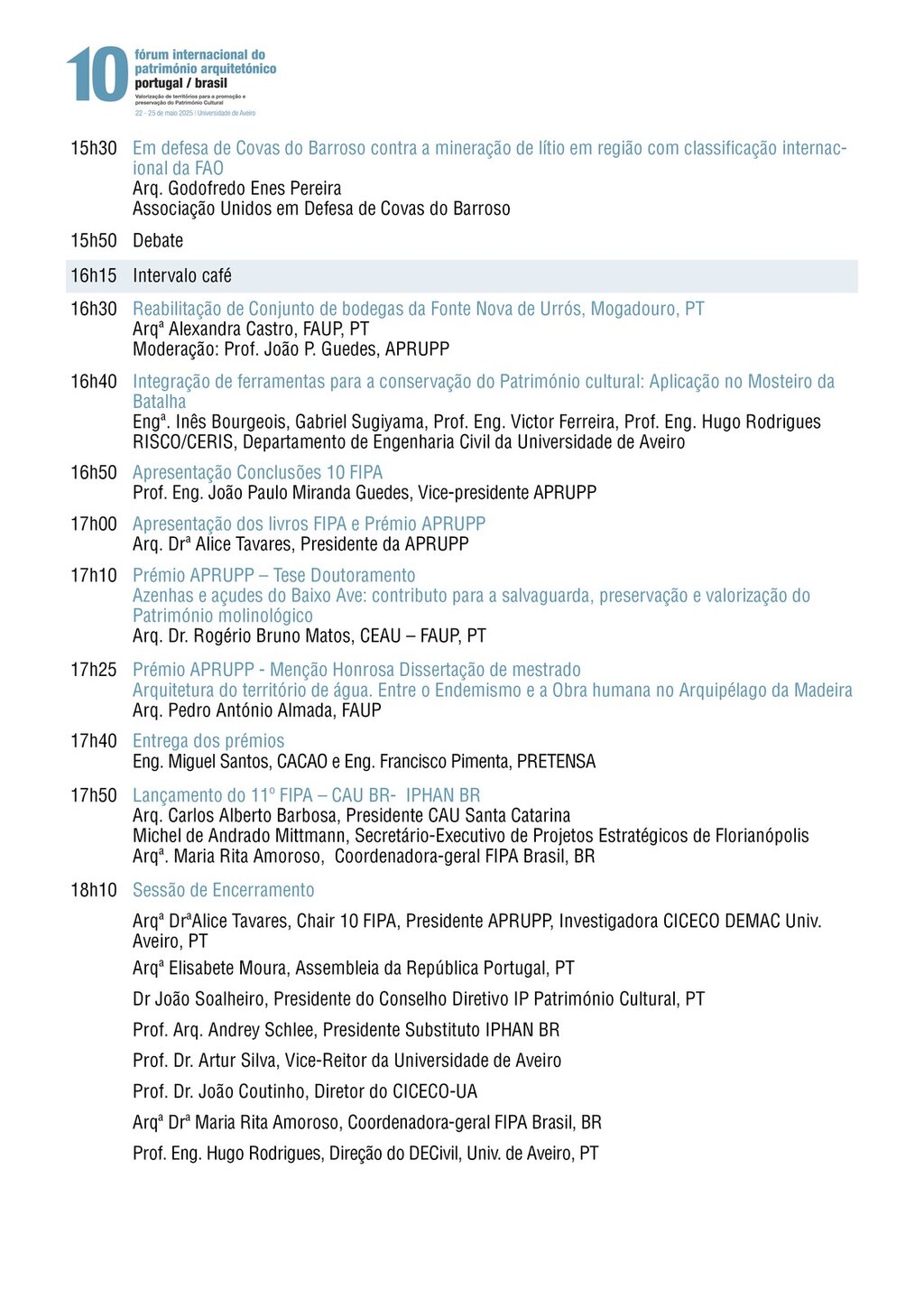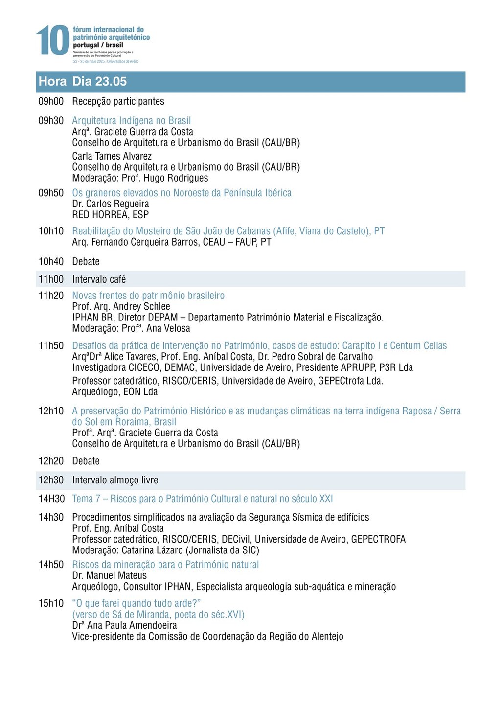 Saiba mais sobre o evento e acompanhe este diálogo essencial sobre o futuro do nosso património em: https://www.ua.pt/pt/patrimonioportugalbrasil/