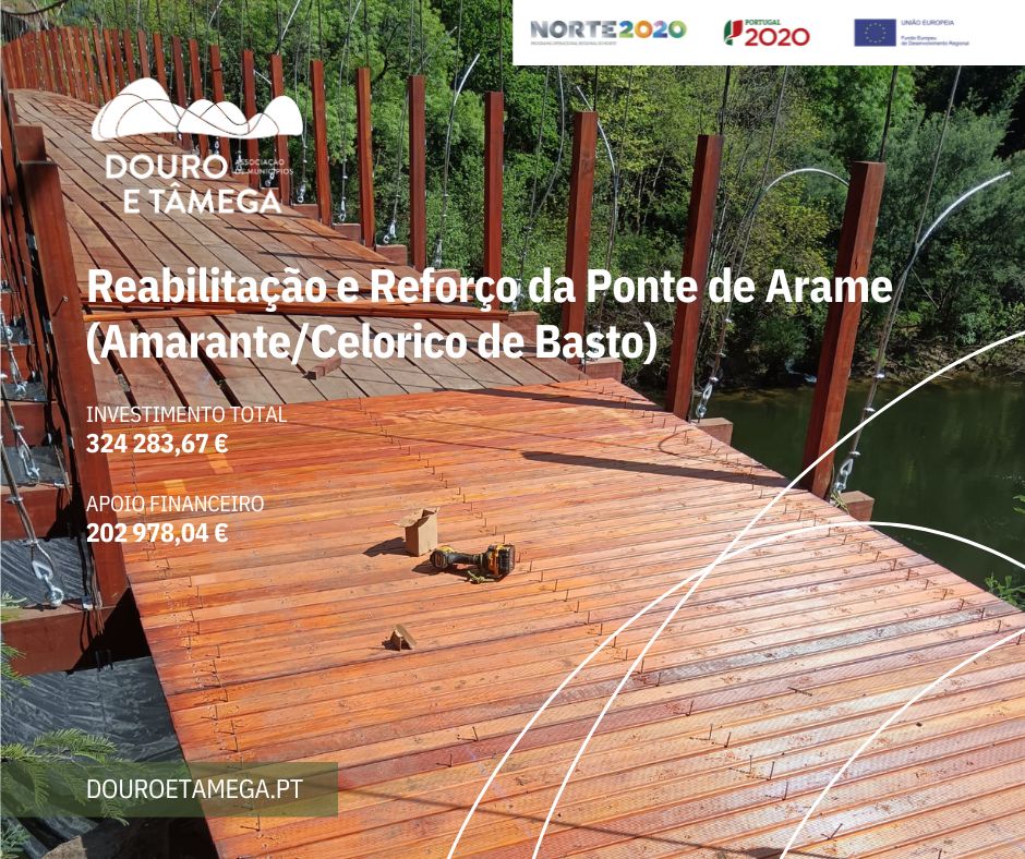 Trata-se de uma obra da responsabilidade da Associação de Municípios do Douro e Tâmega que prevê a reabilitação e o reforço da Ponte de Arame, elemento centenário, estando já ambas as margens com trabalhos avançados para a união fortificada e com segurança necessária para o seu futuro funcionamento.