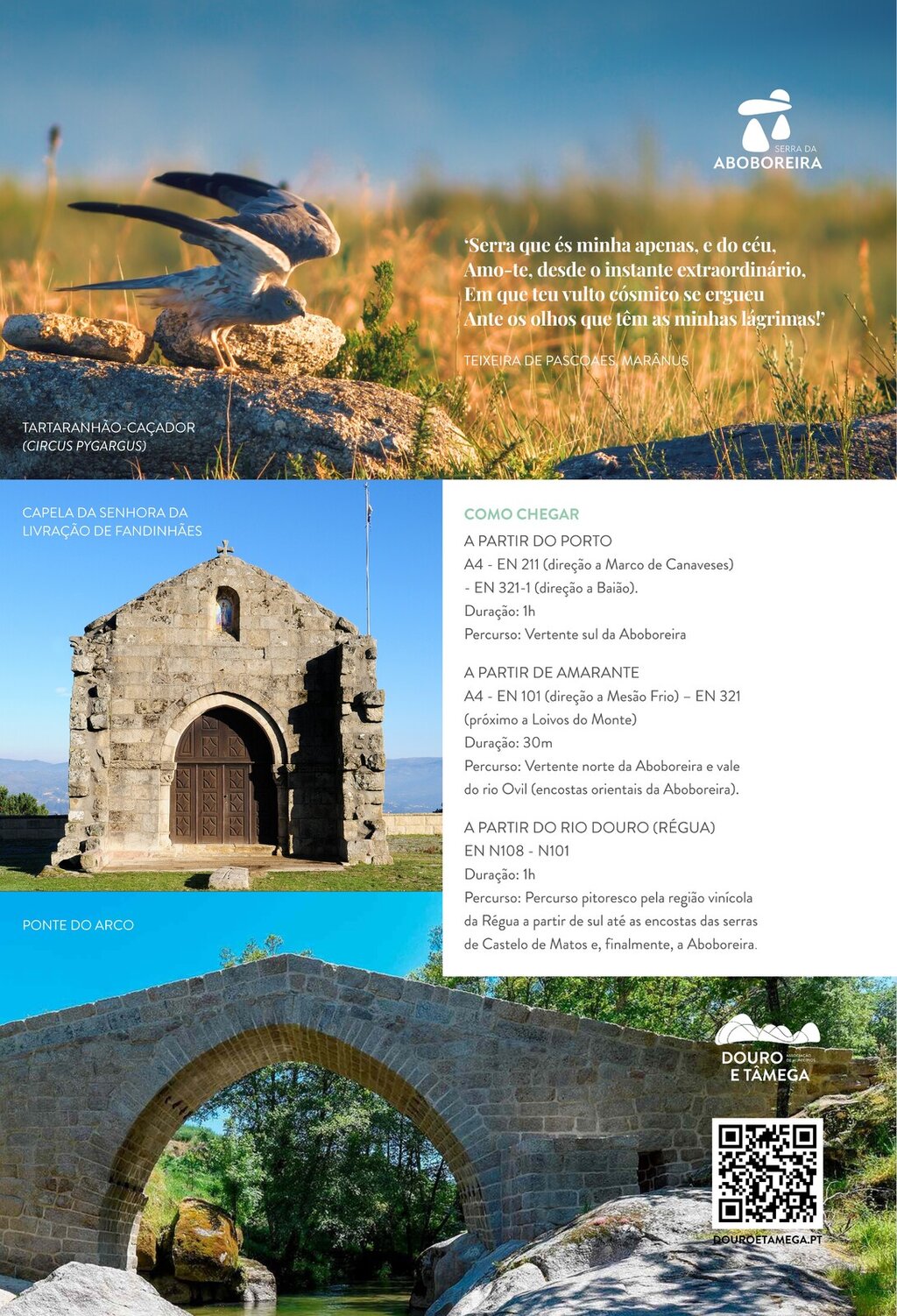 “Serra que és minha apenas, e do céu,Amo-te, desde o instante extraordinário,Em que teu vulto cósmico se ergueuAnte os olhos que têm as minhas lágrimas!”Teixeira de Pascoaes, MarânusSaiba mais sobre este tesouro natural, localizado nos concelhos de Amarante, Baião e Marco de Canaveses. Descubra a riqueza ambiental, cultural e histórica da PPRSA.