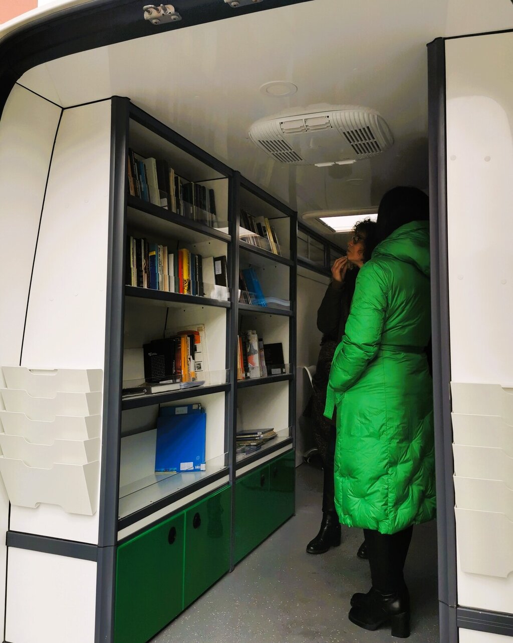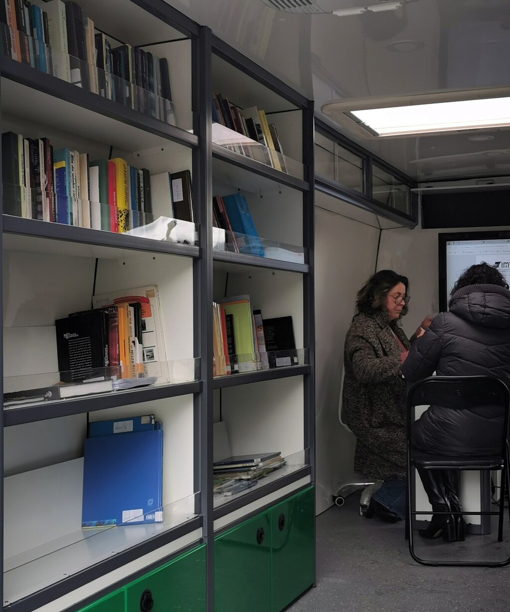 Para além dos serviços públicos, a viatura também conta com uma Biblioteca Itinerante, que visa promover a literatura e a cultura junto dos cidadãos. Este projeto cultural oferece aos munícipes a oportunidade de aceder a livros e outros materiais literários, incentivando a leitura e o conhecimento.